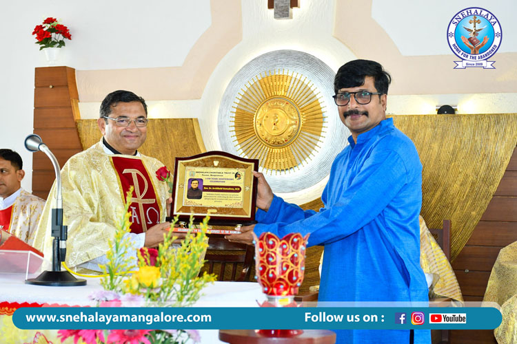 Following the culmination of the Mass, Br Joseph Crasta, the Founder of Snehalaya, delivered a touching expression of gratitude. This he conveyed through the presentation of tokens of appreciation in the form of mementos and bouquets to the officiating clergy. Furthermore, he extended his heartfelt appreciation to the distinguished assembly, the esteemed benefactors, and the cherished well-wishers. Notably, he also acknowledged the outstanding efforts of Mr. Marko Stanly Fernandes, who had earned the distinction of being recognized as the Best Staff of the Year.