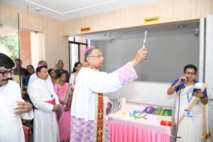 Most Rev. Dr. Peter Paul Saldanha, Bishop of Mangalore, lead the prayer service &blessed the new building. The Auxiliary Bishop of Delhi, Most Rev. Dr. Deepak Valerian Tauro, was present in the blessing ceremony.