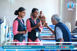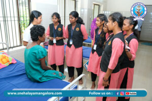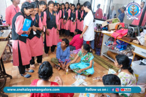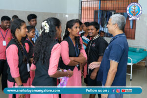 A group of Bachelor of Social Work (BSW) students from Car Street College, Mangalore, recently visited Snehalaya Psycho-Social Rehabilitation Centre as part of their educational exposure. The visit provided students with insights into the rehabilitation practices and support systems offered at Snehalaya for individuals facing mental health challenges. Guided by experienced staff, the students observed day-to-day therapeutic activities and interacted with the residents, enhancing their understanding of psychosocial care. This visit served as an invaluable experience, bridging academic learning with real-world application in the field of social work.