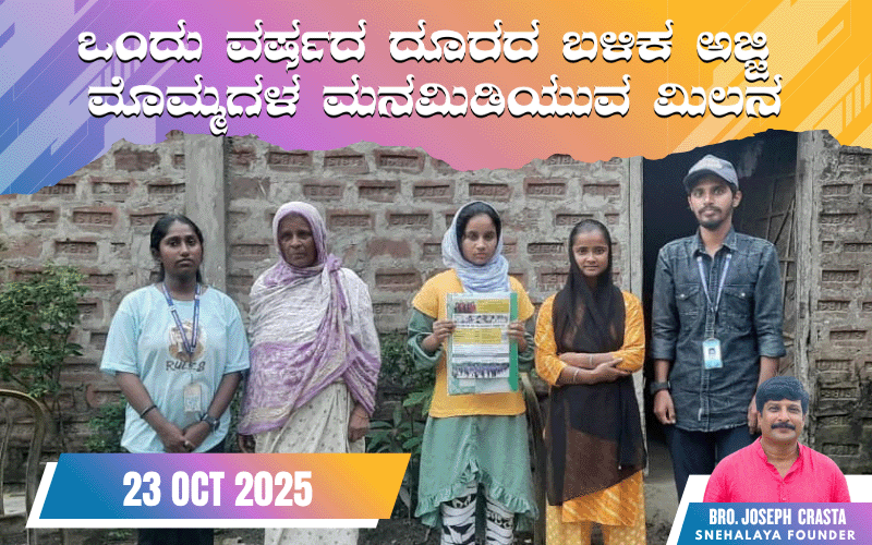 Manjeshwar, October 23, 2025: In yet another heartwarming story of compassion and care, a 21-year-old woman, Mrs. Rameeza Khatun , diagnosed with borderline personality disorder, was joyfully reunited with her grandmother, Mrs. Amir Jhan, after being missing for nearly a year.