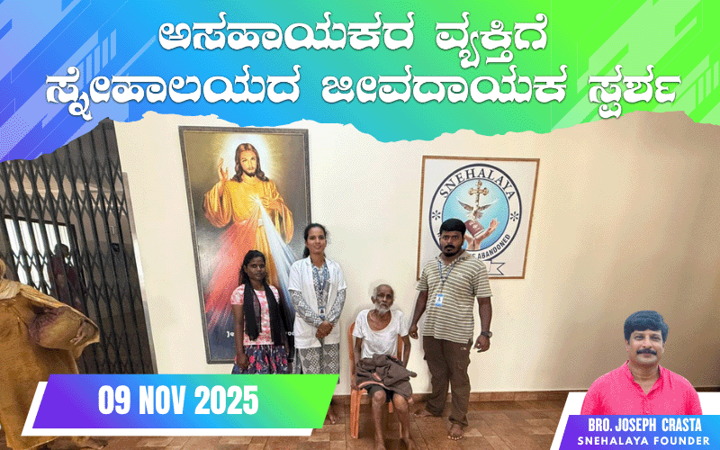 Mr. Ramdev was admitted to Snehalaya, Manjeshwar, on November 05, 2025, where he is currently receiving medical treatment, psychological care, and complete rehabilitation support. Efforts are underway to trace his family and facilitate a safe reunion.