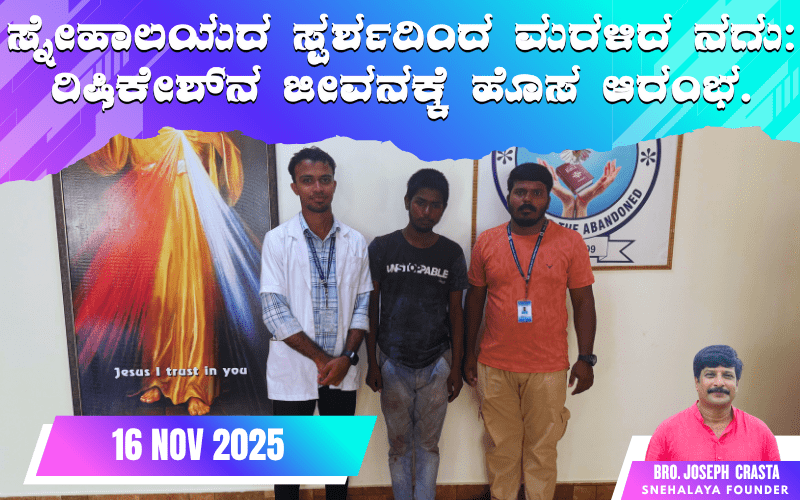 ಸ್ನೇಹಾಲಯದ ಸ್ಪರ್ಶದಿಂದ ಮರಳಿದ ನಗು – ರಿಷಿಕೇಶ್ನ ಜೀವನಕ್ಕೆ ಹೊಸ ಆರಂಭ.