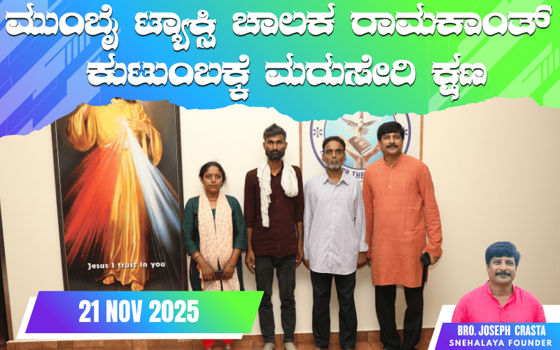 Manjeshwar, November 21, 2025: In a compassionate and timely intervention, Snehalaya Psycho–Social Rehabilitation Center successfully reunited Mr. Ramakant Patil with his daughter, Ms. Chhaya Shukla, and his family after rescuing him from the streets of Kasaragod and providing necessary medical care.