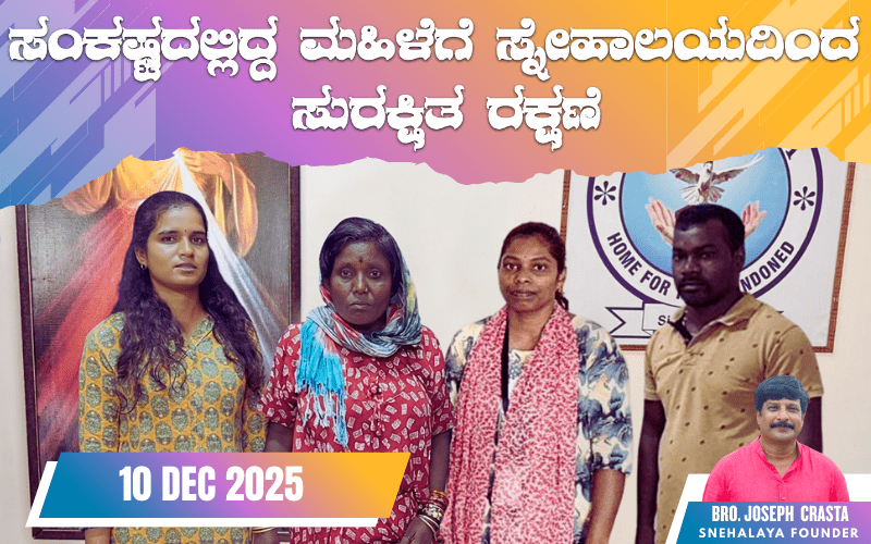 Mangaluru, December 10, 2025: A 45-year-old woman identified as Shalini was rescued by the Snehalaya Psycho-Social Rehabilitation Centre team from Mangaluru Central Railway Station after she was found wandering alone in a helpless and disoriented condition.
