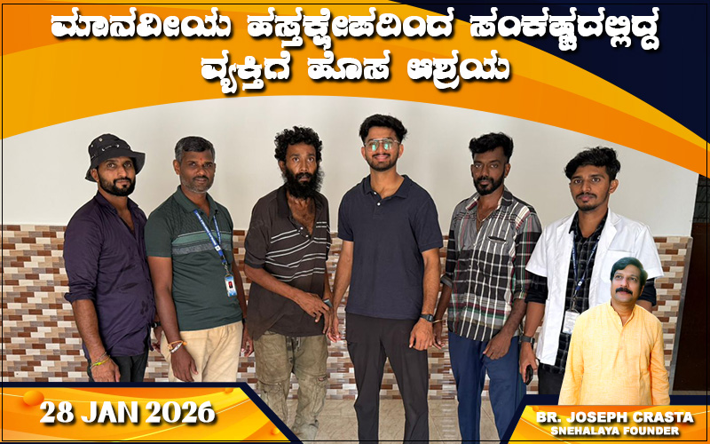 ಈ ಮಾಹಿತಿಗೆ ತಕ್ಷಣ ಸ್ಪಂದಿಸಿದ ಸ್ನೇಹಾಲಯದ ರಕ್ಷಣಾ ತಂಡವು ಸ್ನೇಹಾಲಯದ ಟ್ರಸ್ಟಿಯವರಾದ ಶ್ರೀ ಜೋವಿಯಲ್ ಕ್ರಸ್ಟ ಅವರ ನೇತೃತ್ವದಲ್ಲಿ ಯಾವುದೇ ವಿಳಂಬವಿಲ್ಲದೆ ಸ್ಥಳಕ್ಕೆ ಆಗಮಿಸಿ, ಸೂಕ್ತ ಸಂವೇದನಾಶೀಲತೆ, ಮಾನವೀಯ ಕಾಳಜಿ ಹಾಗೂ ವೃತ್ತಿಪರ ಕ್ರಮಗಳೊಂದಿಗೆ ಶ್ರೀ ಸಾರನ್ ಅವರನ್ನು ಸುರಕ್ಷಿತವಾಗಿ ರಕ್ಷಿಸಿತು. ರಕ್ಷಣೆಯ ನಂತರ, ಮುಂದಿನ ಆರೈಕೆ, ರಕ್ಷಣೆ ಮತ್ತು ಸಮಗ್ರ ವೈದ್ಯಕೀಯ ಮೌಲ್ಯಮಾಪನಕ್ಕಾಗಿ ಜನವರಿ 25, 2026 ರಂದು ಅವರನ್ನು ದಾಖಲಿಸಲಾಯಿತು. ಪ್ರಸ್ತುತ ಶ್ರೀ ಸಾರನ್ ಅವರನ್ನು ಸುರಕ್ಷಿತ, ಗೌರವಪೂರ್ಣ ಹಾಗೂ ಆರೈಕೆಯ ವಾತಾವರಣದಲ್ಲಿ ಇರಿಸಲಾಗಿದ್ದು, ಅವರ ತಕ್ಷಣದ ಅಗತ್ಯಗಳನ್ನು ಪೂರೈಸುವ ಜೊತೆಗೆ ಅವರ ಮಾನಸಿಕ ಮತ್ತು ದೈಹಿಕ ಸ್ಥಿತಿಗೆ ಅನುಗುಣವಾಗಿ ಅಗತ್ಯ ಬೆಂಬಲ ಮತ್ತು ಚಿಕಿತ್ಸೆ ಪ್ರಾರಂಭಿಸಲಾಗಿದೆ.
